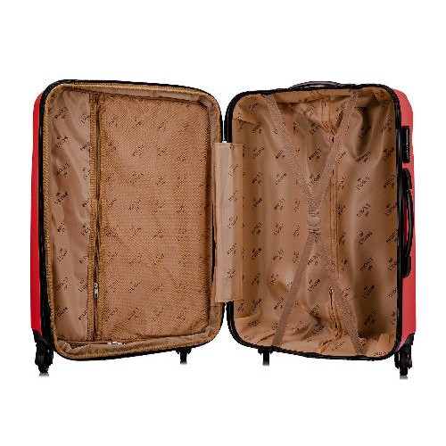 Внутри: внутреннее пространство чемодана удобно организованно для оптимального расположения вещей: половина вещей в чемодане фиксируется разделителем на молнии, половина – перекрещивающимися ремнями. На разделители - сетчатый карман на молнии.
