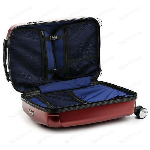 Внутри: внутреннее пространство чемодана удобно организованно для оптимального расположения вещей: каждая половина чемодана фиксируется тканевым разделителем, на каждом разделителе удобные карманы на молнии.